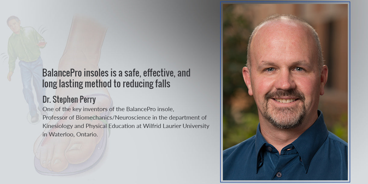 "A study on BalancePro insoles has shown a 44% fall reduction for adults 65 years and older." - Dr. Stephen Perry, Professor of Neuromechanics at Wilfrid Laurier University